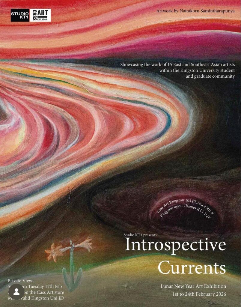 To celebrate Asian heritage, the local creative agency, Studio KT1, has organised an exhibition that showcases the works of East and Southeast Asian artists of Kingston School of Art. Catch it from the 1st to 27th February at Cass Art. Find out more information here and book your Private View Tickets.